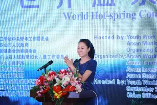 九三學社中央青年工作委員會秘書長、阿爾山市人民政府副市長石浩男代表阿爾山市委、政府在世界溫泉大會上致辭