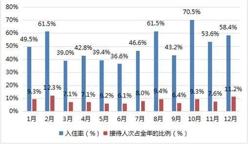 圖1 2018年1月-12月溫泉企業的入住率及接待人次占全年的比例